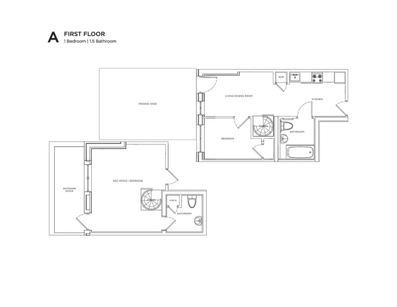 Residence 1A offers a 2 bedroom, 1.5 bath apartment with oversized windows, private back yard and private patio in a 2018 built beautifully maintained and managed building. Note that the 2nd bedroom is a rec space with its own walkout patio and 1/2 bath.