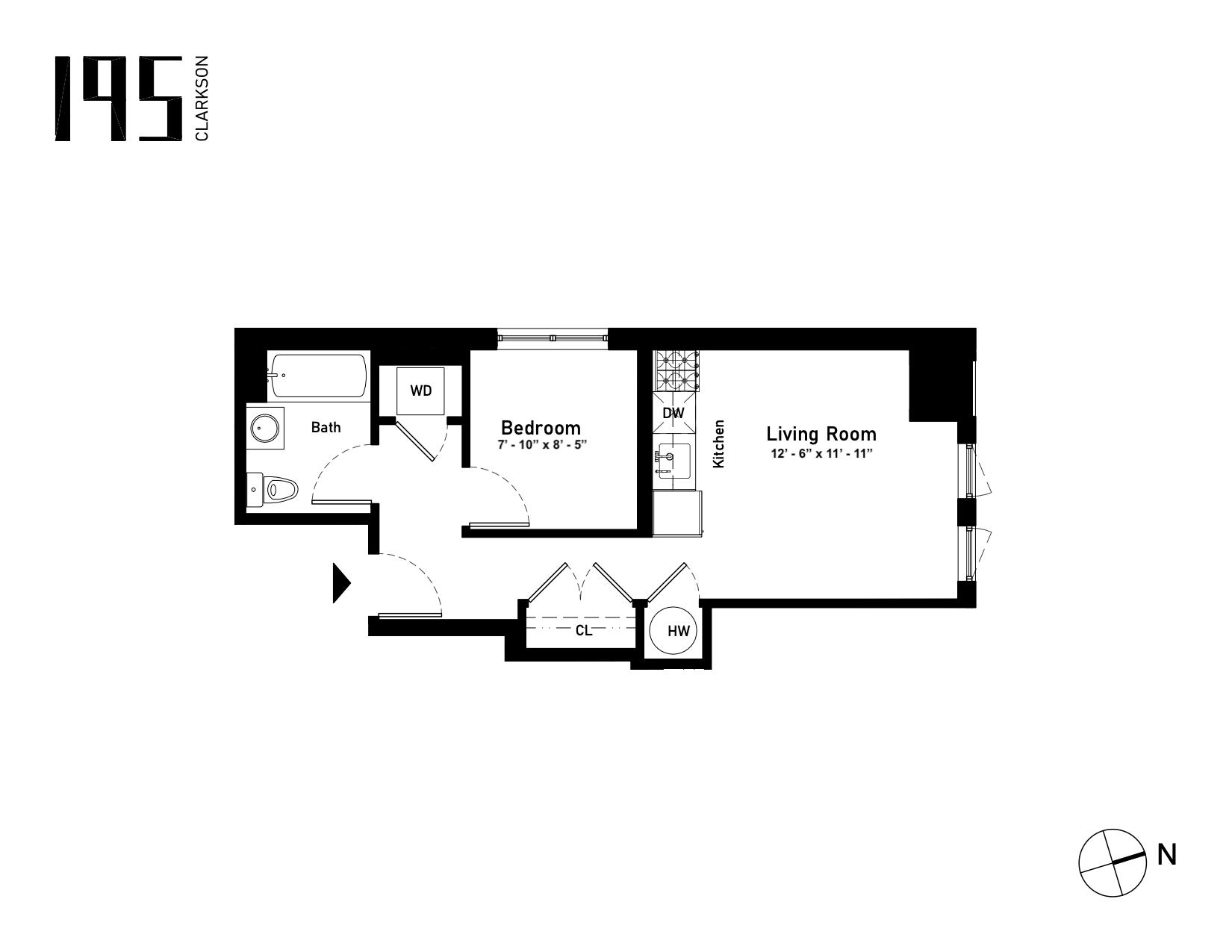 Apartment Details: - Butterfly virtual doorman system - In unit washer and dryer - Solar window treatments in the living room - Blackout shades in the bedroom - Wide plank white oak flooring - Ample closet space - Central heating and air conditioning - The sleeping area fits a full size bed ideally and a queen size snugly. It is 7'10" x 8'5" ft (65 SF); See floorplan for details. If you've been looking at studios because most 1-beds are too high priced, this junior setup is a perfect blend of functionality and price! *Furnishings in photos are virtually staged for inspiration*