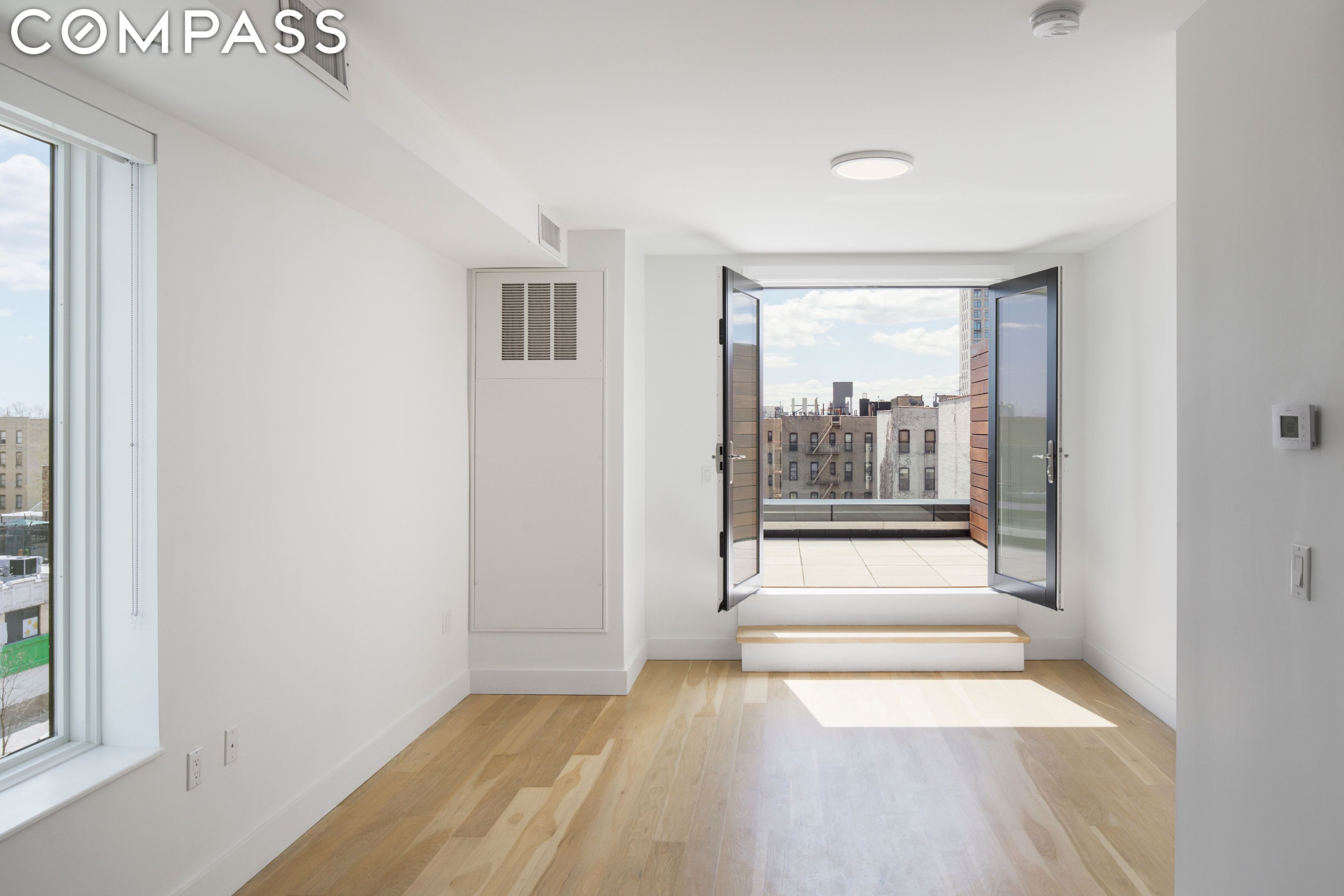 Apartment Details: - Extra large private terrace - 2-bedroom, 2-bath - Butterfly virtual doorman system - In unit washer and dryer - Solar window treatments in the living room - Blackout shades in the bedroom - Wide plank white oak flooring - Ample closet space - Central heating and air conditioning