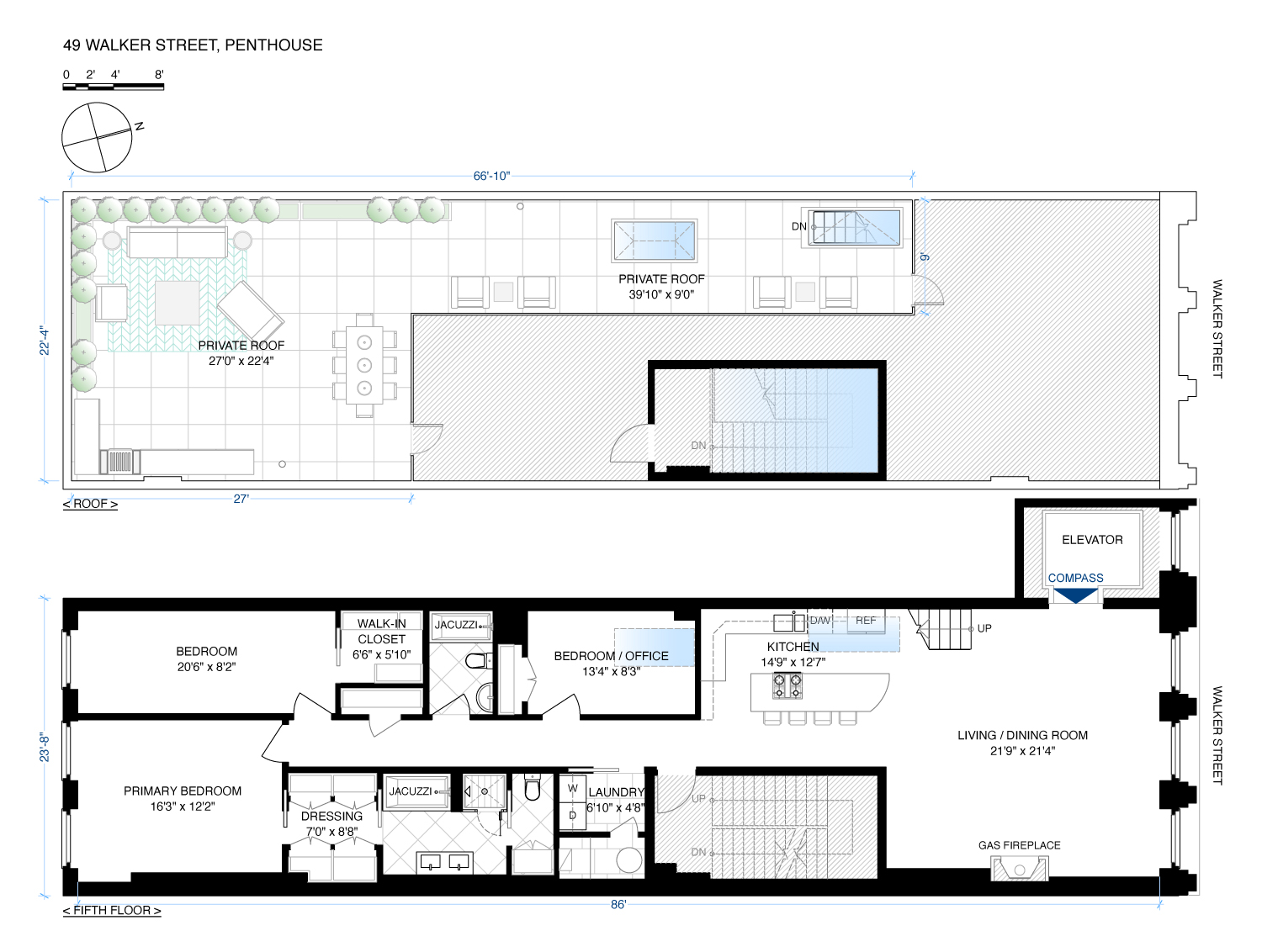 Welcome to the Penthouse at 49 Walker Street, a perfectly situated 2.5-bedroom (see note below), 2-bath, 2,000+/- sf, full floor true loft with its own private roofdeck in the heart of TriBeCa's Historic District on picturesque Walker Street.